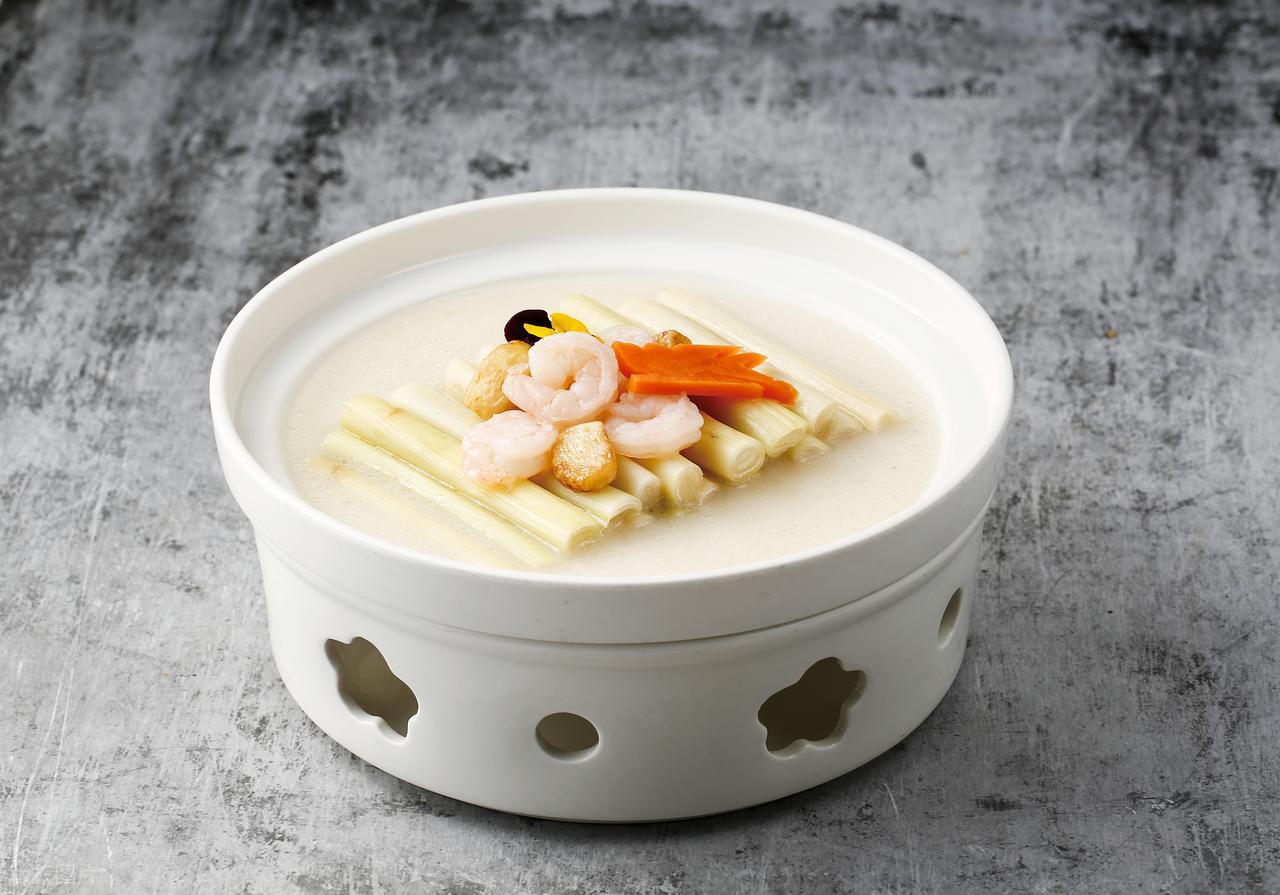 蒲菜在汉初枚乘的《七发》中就有记载,明清文人诗文中也常赞其风味。这道菜展现了淮扬菜善于利用本地特产,制作清新淡雅菜肴的特点。