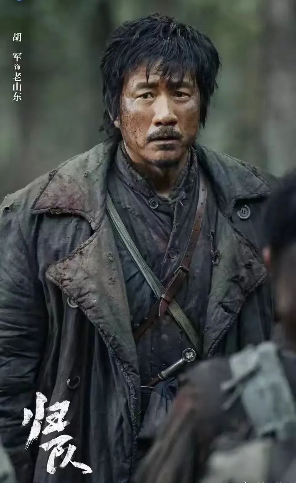 今年上半年刚刚凭借《北上》谢老大再次火出圈的胡军,他在剧中饰演男一号老山东,也就是排长鲁长山。
