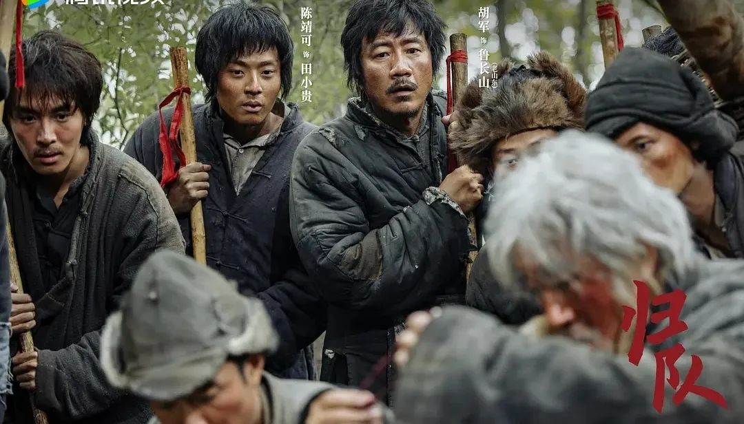 老山东(胡军饰)带领着一支十六人的队伍,在山林里休息。