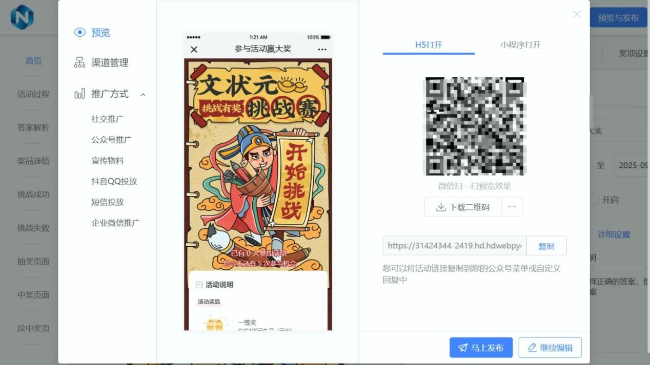 渠道数据追踪:生成带参链接投放到朋友圈、抖音、小红书等不同渠道,在“传播数据”里就能看到每个渠道的点击量、参与人数、转化人数。比如你投了三个渠道,发现抖音的转化是朋友圈的3倍,后续就可以把预算集中到抖音,避免浪费。