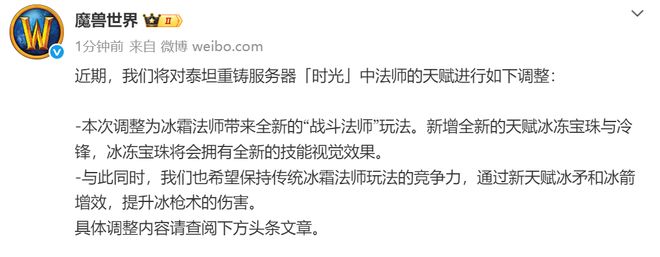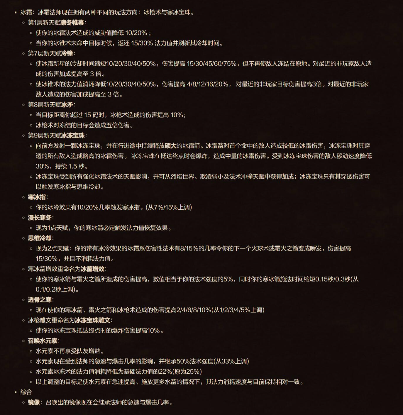 魔兽世界时光服法师亲儿子天赋调整来了,这次主要调整是冰霜法师,拥有两种不同的玩法方向:冰枪术与寒冰宝珠。