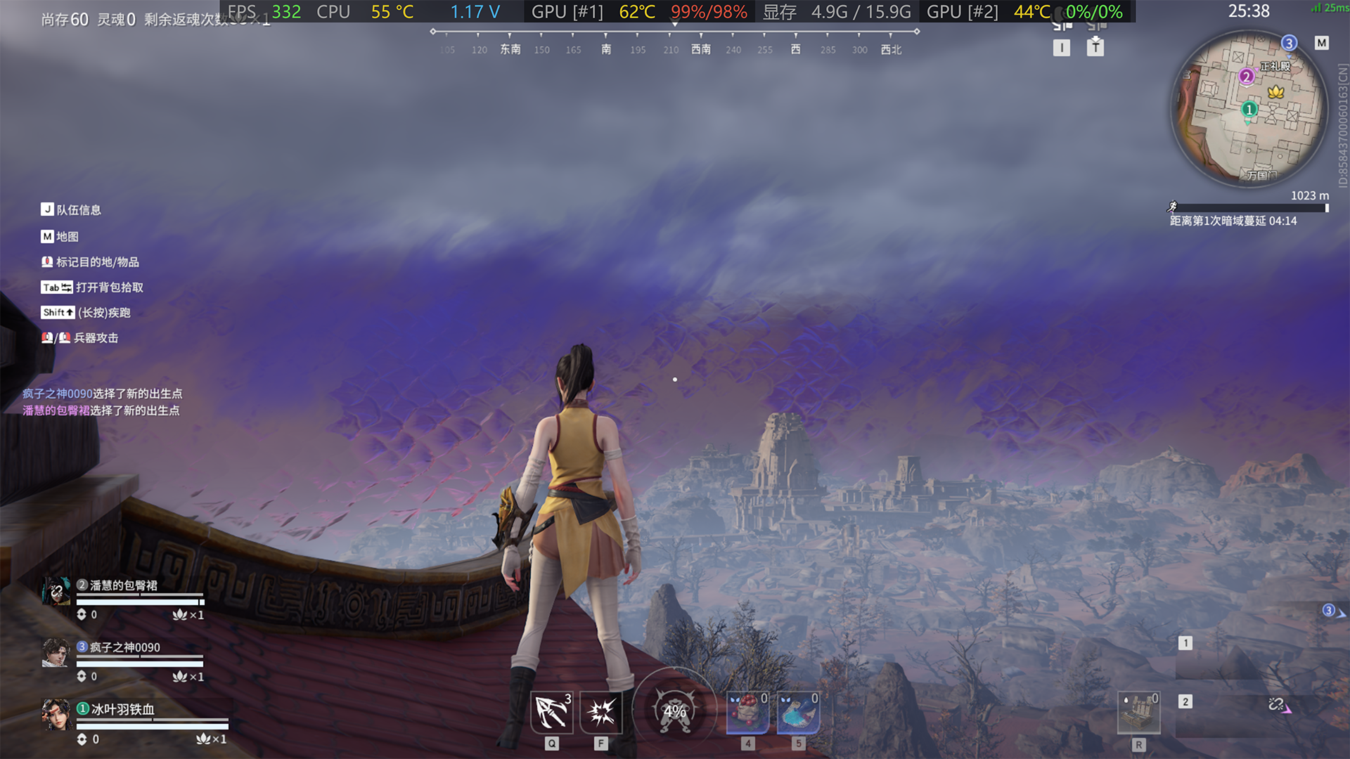我们选择了两款对于内存频率相当敏感,且直接关乎到竞技体验的游戏进行测试。其中,在1080P模式下,《永劫无间》的峰值帧率为332。