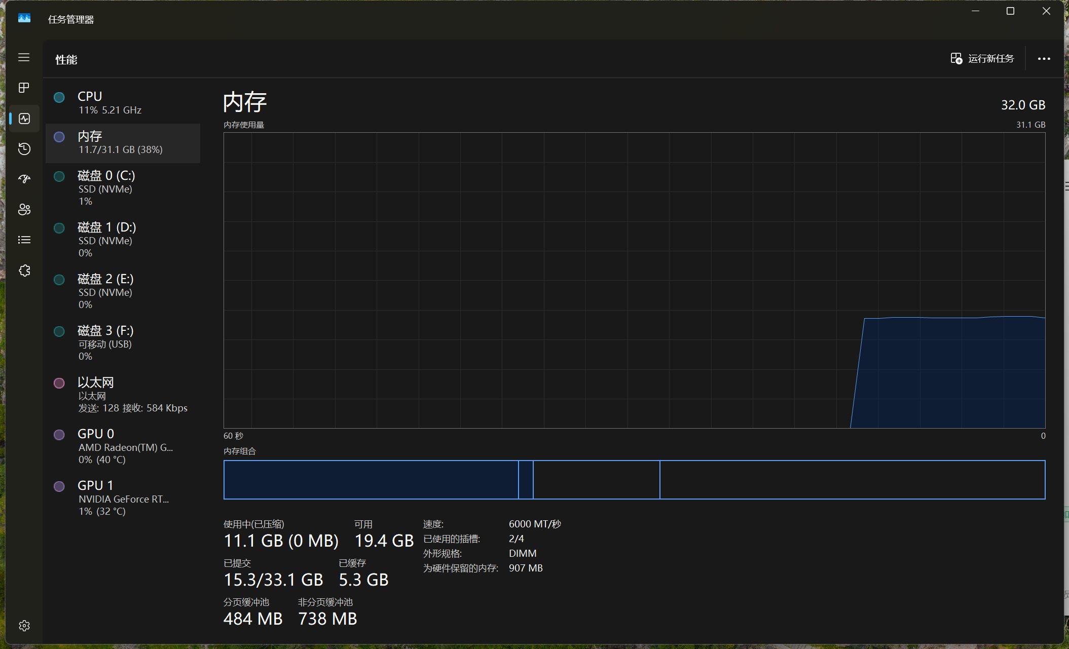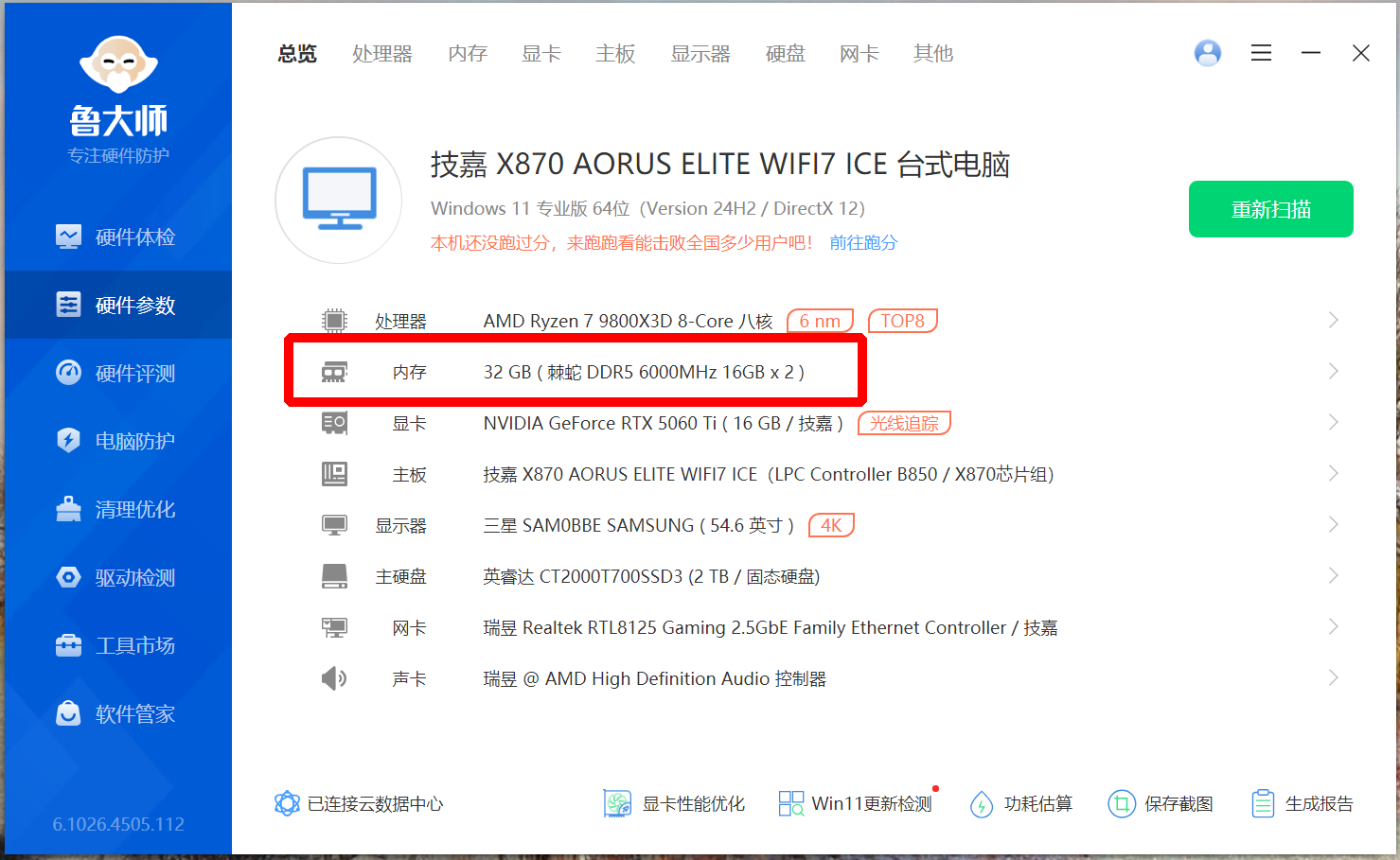再次重新启动之后,我们就可以发现,这对内存已经在6000MT/s之下运行了。我们再来看一下,它的满血性能表现。