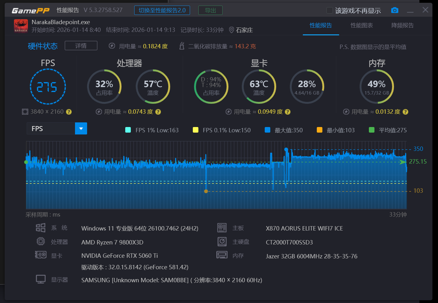 平均帧率达到了275。