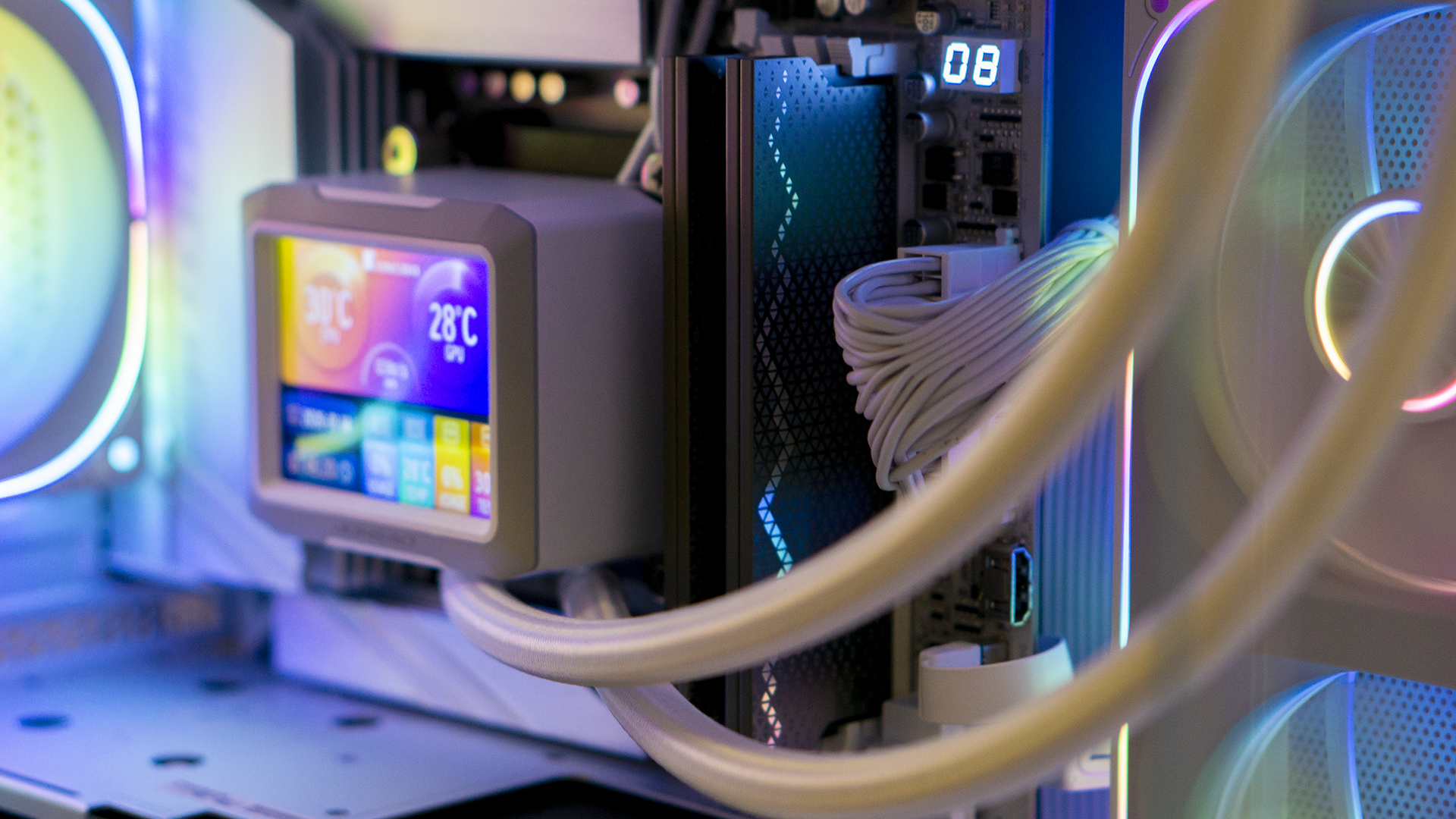 虽然是没有RGB的素色灯条,但棘蛇·钱龙却巧妙的借力机箱内的RGB色彩,让蛇形图案闪烁在了内存的马甲之上。另外,由于它的马甲是中性的深灰配色,因此不论是白色、还是黑色海景房,它都是蛮搭的。