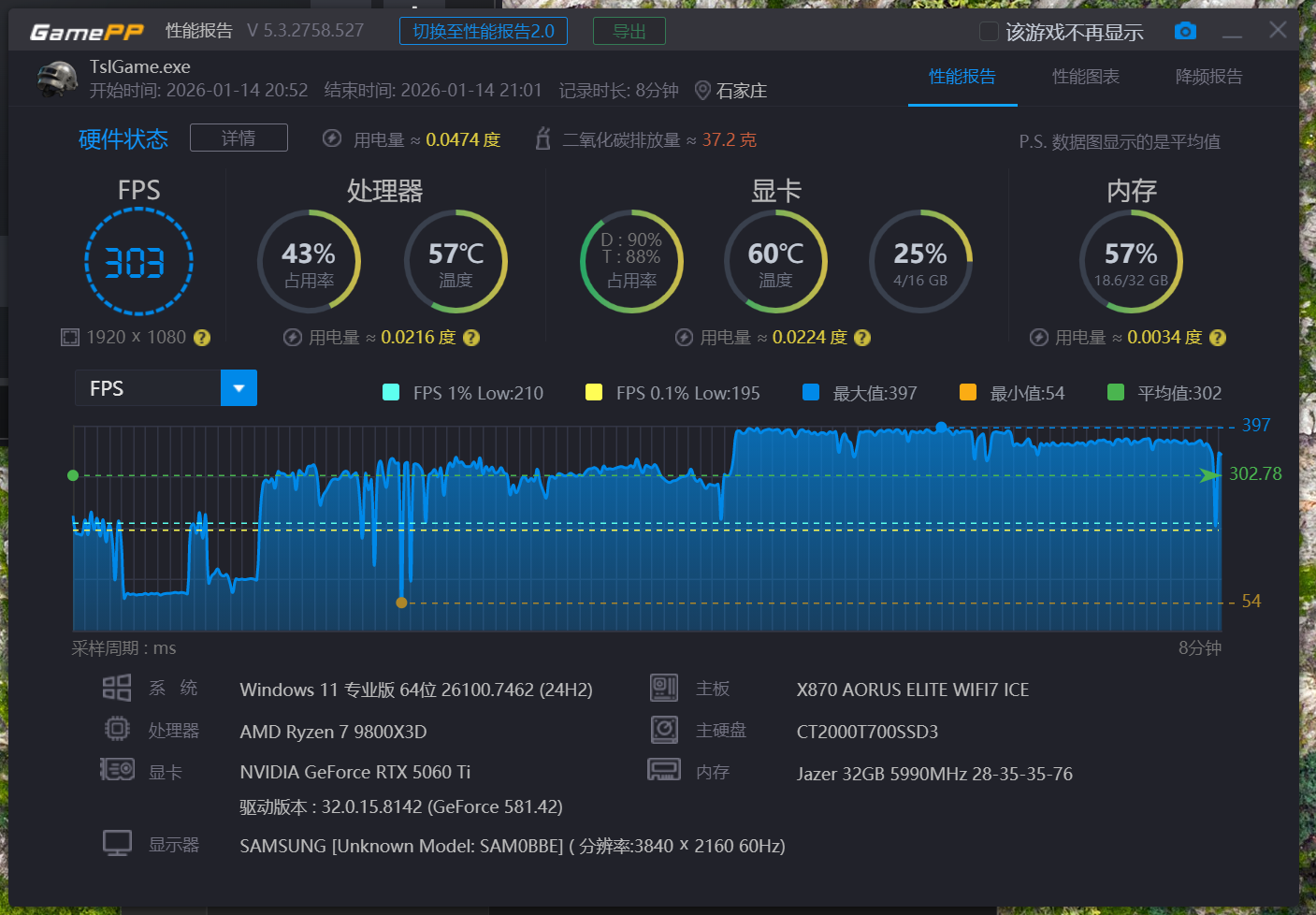平均帧率为303,相较于默频它的提升约在10%左右,看似不大,但在决胜关头,决胜的瞬间,它已经可以为您提供足够的优势了。