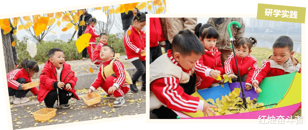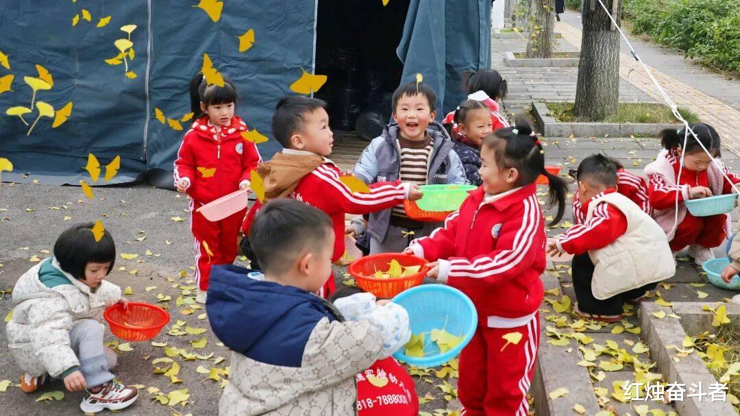 步入林中,孩子们化身小小收集家,捡拾形态各异的银杏叶,将阳光的味道、自然的纹理悄悄捧在手心。