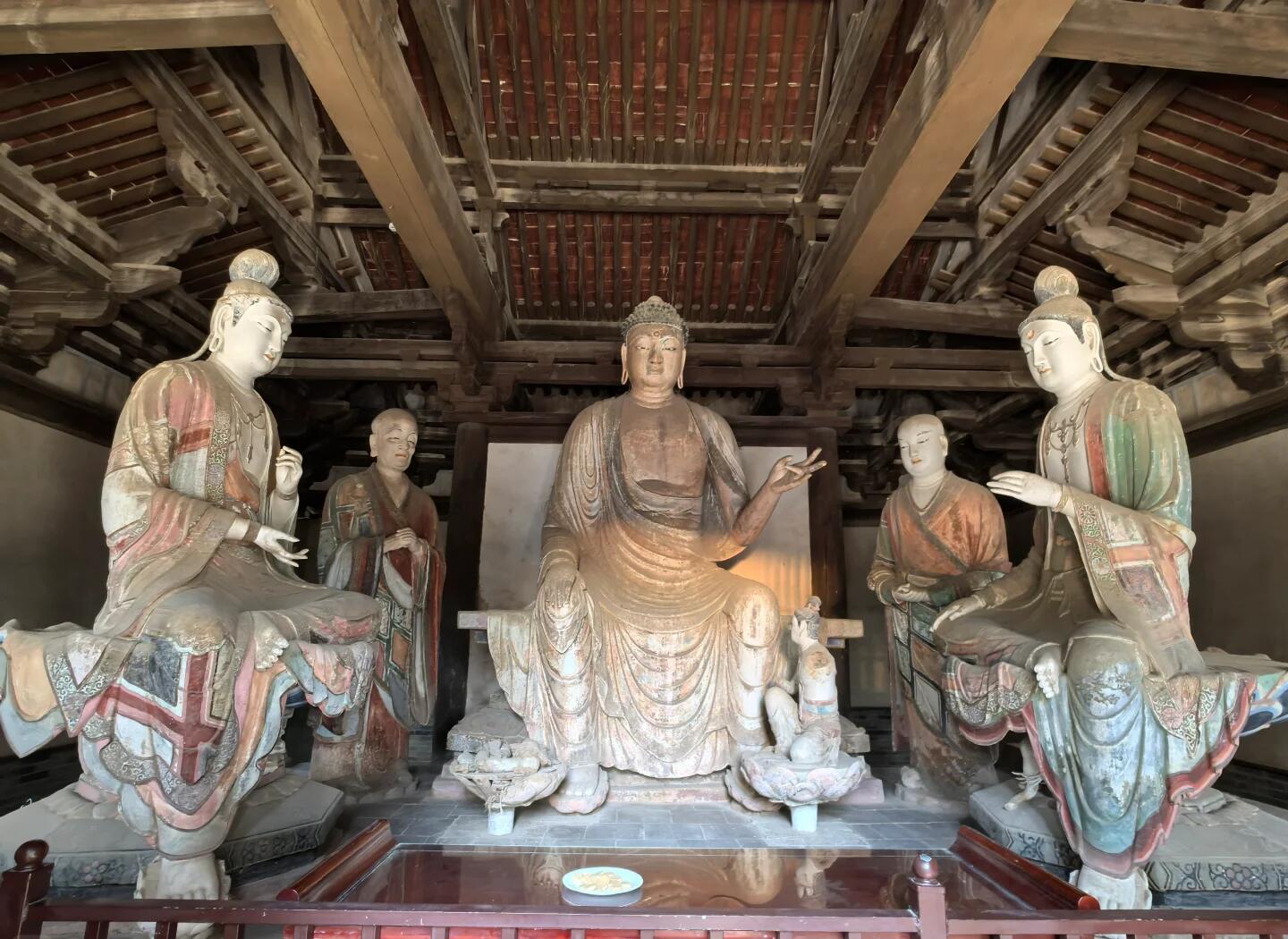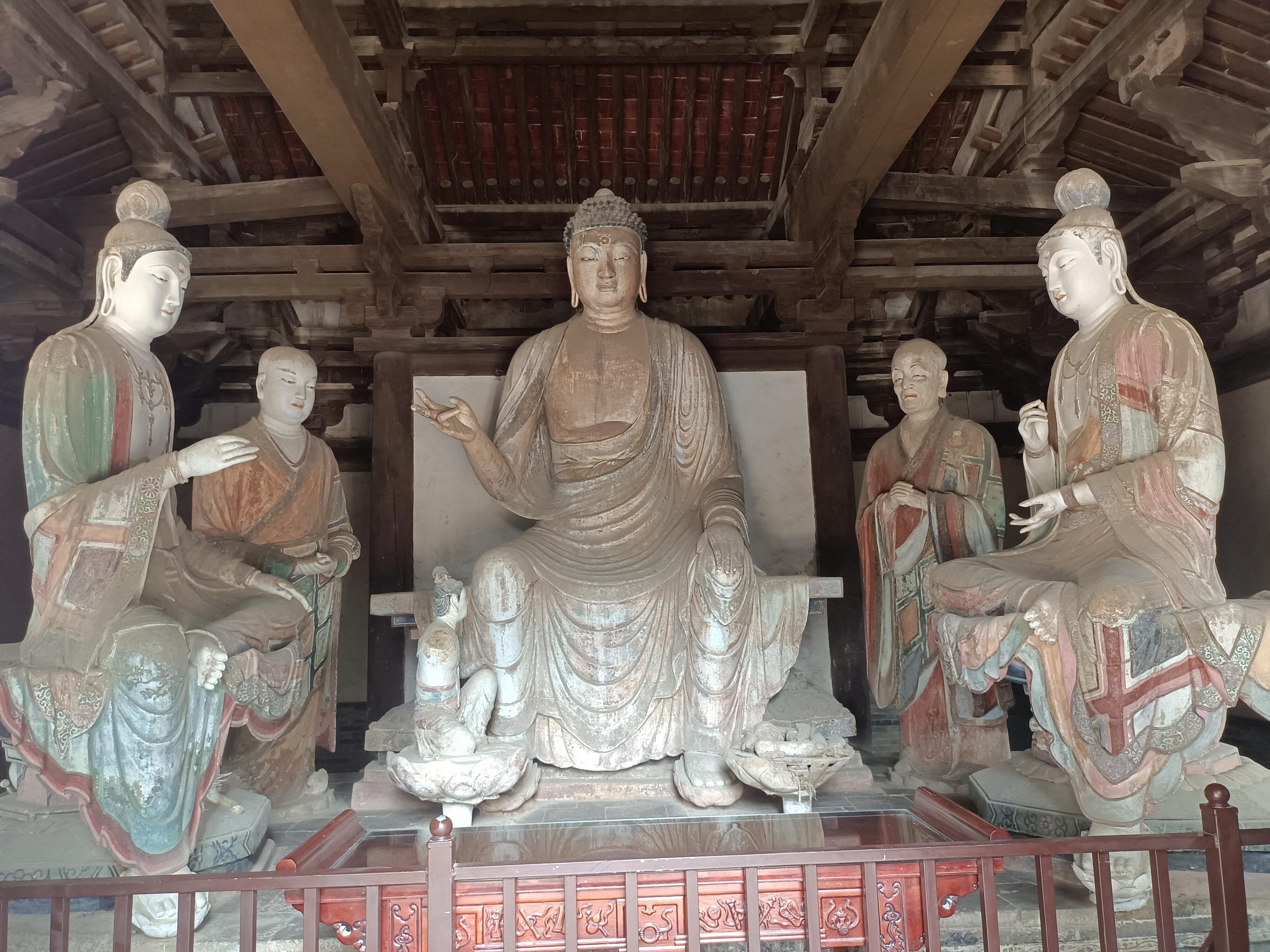 下寺则是另一番景象。院中的老柏树粗壮得需要三人合抱,树皮上的纹路如同老人手背上凸起的青筋,布满岁月的痕迹。可枝头却郁郁葱葱,新抽的嫩芽与苍劲的枝干相映成趣,诉说着生命的顽强与不息。唐代经幢静静伫立在角落,表面刻满密密麻麻的经文。山风拂过,经幢上悬挂的铜铃发出清脆的声响,“叮当、叮当”,声音清冽得如同冰棱落地,在寂静的寺院中回荡,让人忍不住屏住呼吸,生怕惊扰了这份宁静。