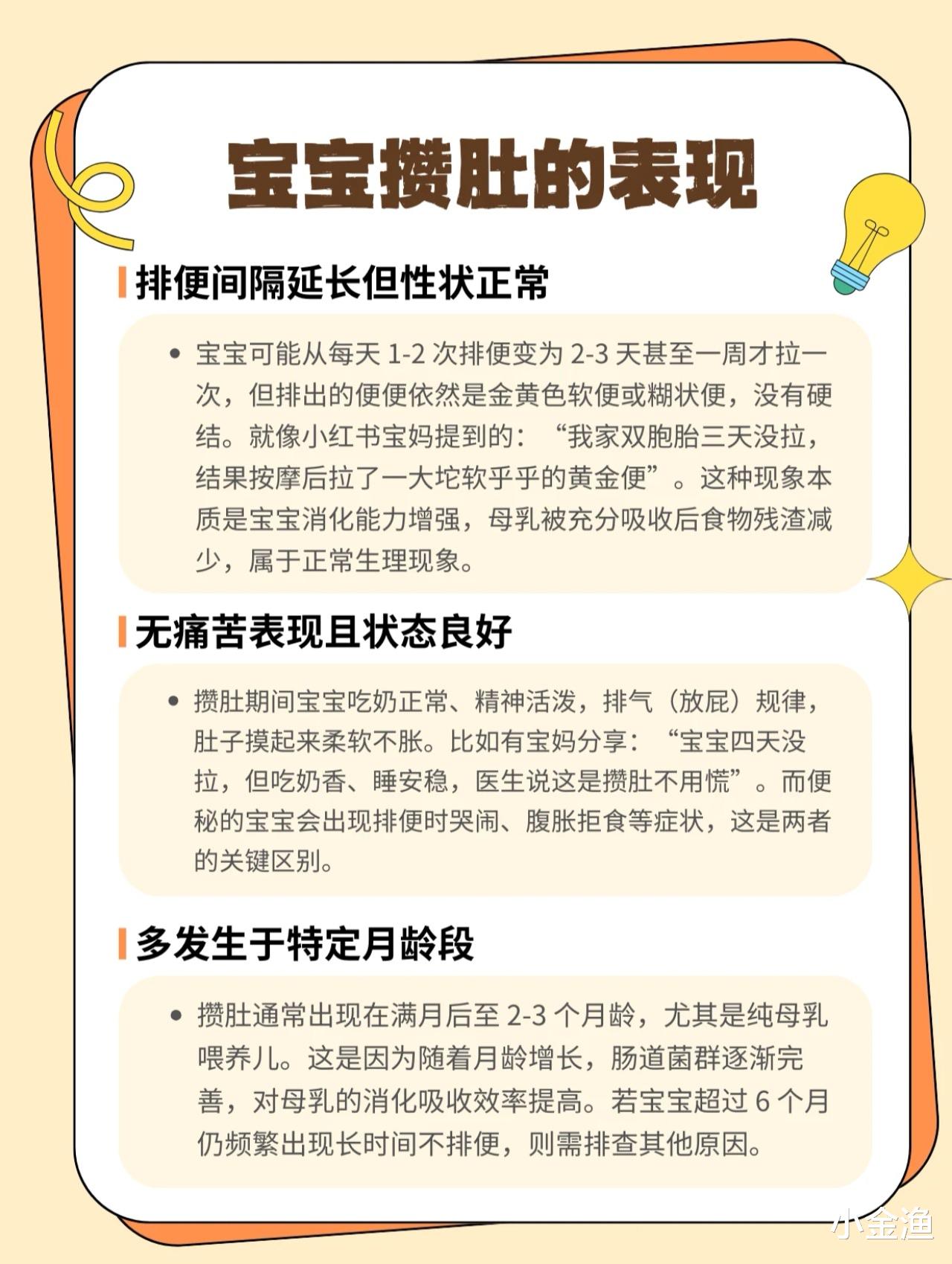 那到底什么是攒肚呢?简单来说,就是宝宝长大了,肠胃功能变强了,对母乳或者奶粉消化吸收得特别彻底,剩下的残渣就少了,不够刺激肠道蠕动,所以拉臭臭的次数就变少了。这可不是便秘,更不是上火,而是宝宝成长的一个正常阶段,一般发生在满月后到添加辅食前这段时间。