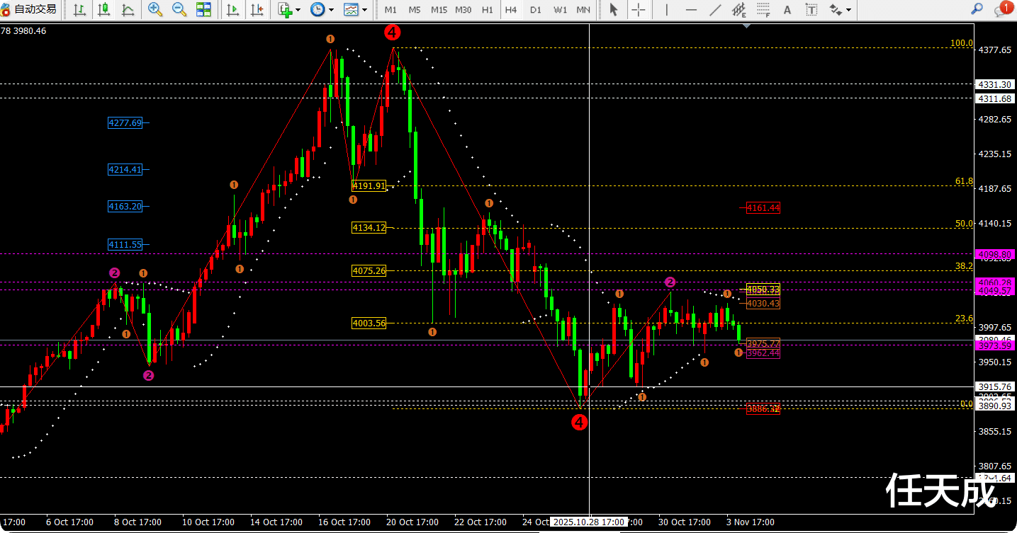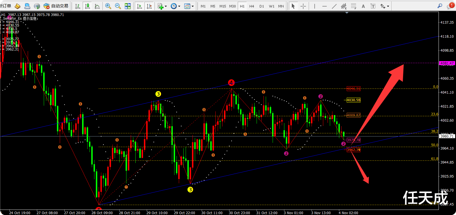 日线级别我们短期下方关注3972和3962的支撑即可,只有3962下破才会有机会去3900-3910附近进行二次多单。