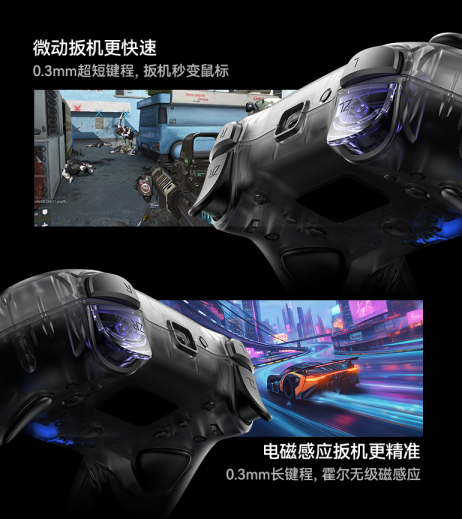 L/R力反馈扳机更实现“质的飞跃”,2.5N的真实反馈力可模拟枪械后坐力与油门阻力,0.3mm长短键程双模式设计,既能当“极速鼠标”又能精准控速,让“按下”升级为“扣动”的沉浸触感。