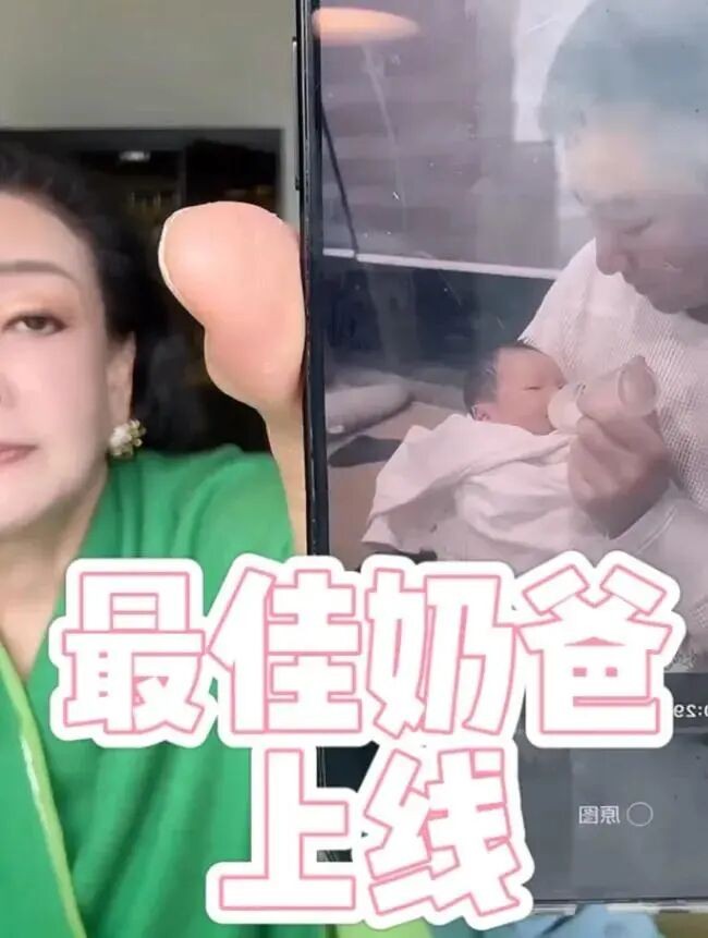 小七宝蜷缩在爸爸的大手里,只露出一颗圆圆的小脑袋,整个画面看起来非常温馨,马筱梅打趣地说自己不太会喂奶拍嗝,这些事全都交给了“老爸爸”。