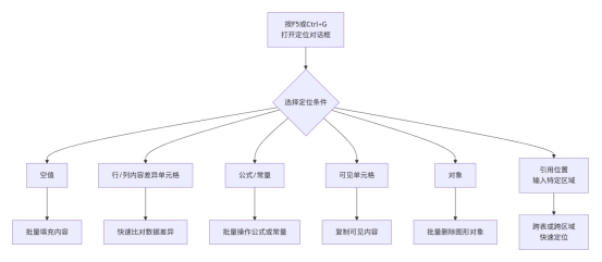 Excel 中的F5键(其功能等同于Ctrl+G快捷键)是调出“定位”功能的钥匙,而“定位条件”则是其强大能力的核心。它能让您超越常规的鼠标选择,精准定位到特定类型的单元格,从而大幅提升数据处理效率 。