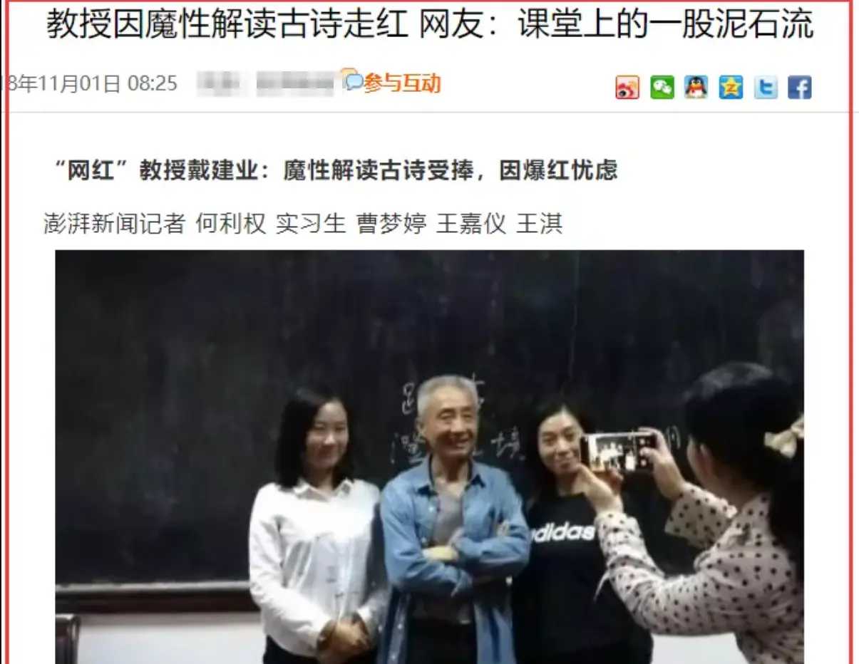 网友们给予戴建业极高的评价,认为他讲课既有理有据,又不至枯燥乏味,反而极其形象生动,经由他的讲述,同学们能够设身处地地理解古人。