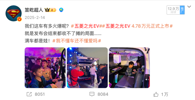 当然,骨子里的营销人属性也没丢,他还琢磨着,借着现场的人流量,五菱的电车在展会上会更受欢迎,尤其是小孩子,本来还想铺一波PR稿,结果摸了摸口袋,还是没钱,只能笑着算了。