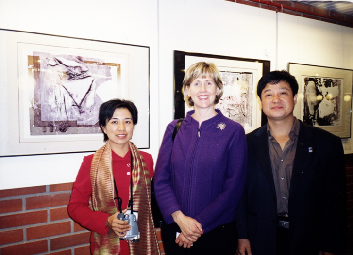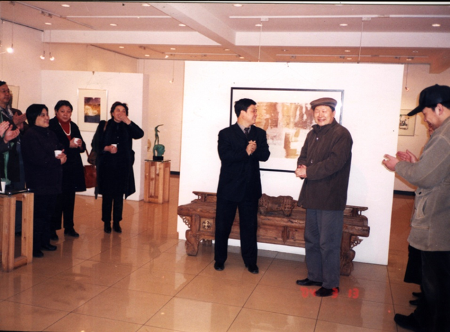 2003年中国.芬兰建交50周年“中国文化周”郑忠个展在芬兰首都赫尔辛基文化中心举行,中为芬兰教育部部长。