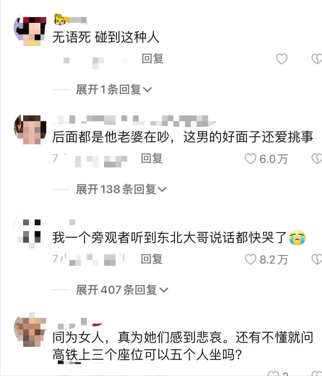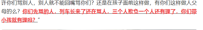 列车长过来调解后,熊孩子的父母不仅强势要求女子换座,不要坐在他们前面。
