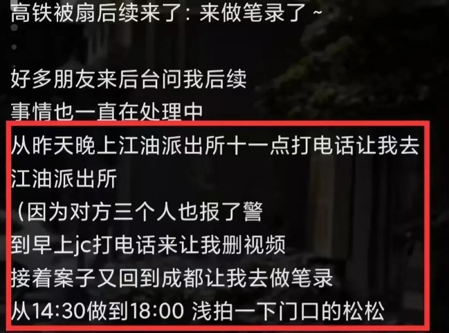 熊孩子的母亲甚至当着列车长的面,突然打了女子一巴掌。 女子恼羞成怒,立即回击。