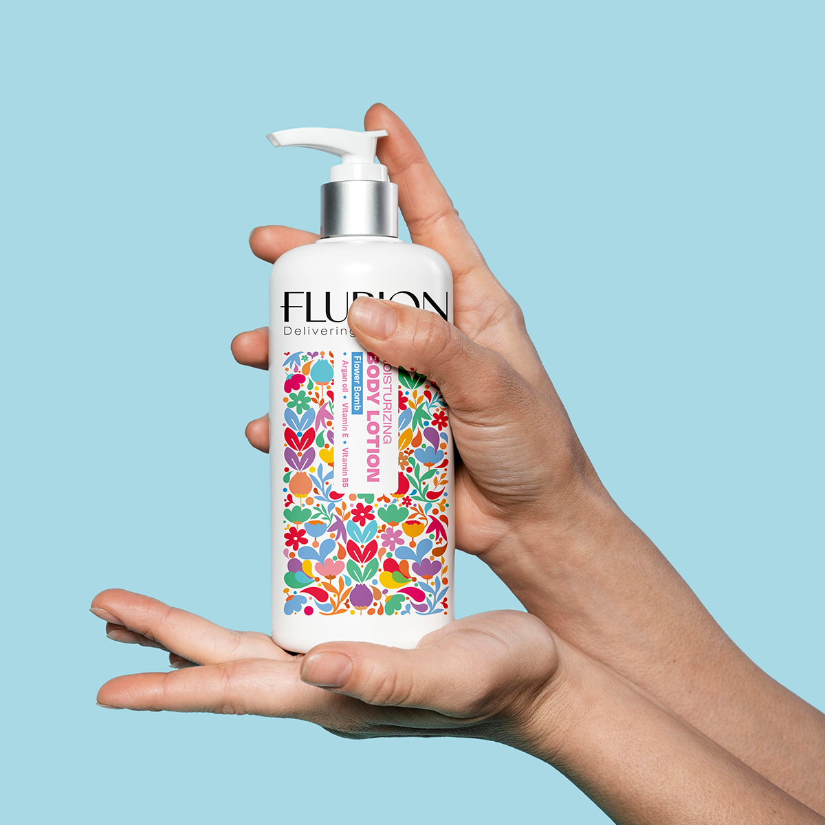 FLUBION的包装设计堪称一绝,其瓶身以纯净的白色为底色,宛如一张空白的画布,为后续的精彩设计奠定了简洁而高雅的基调。泵头设计不仅方便使用,更增添了一份精致感。瓶身正面,色彩斑斓的花卉图案犹如一幅绚丽的艺术画作,瞬间吸引眼球。这些花卉图案并非随意堆砌,而是经过精心布局,展现出一种自然、灵动的美感,仿佛将大自然的生机与活力凝聚于瓶身之上。在文字设计方面,“FLUBION”以简洁大气的字体呈现,彰显品牌的专业与可靠。文字信息排列整齐、清晰易读,让人能够快速了解关键信息。整体设计在色彩的碰撞与文字的协调搭配下,既充满了艺术感,又不失实用性。
