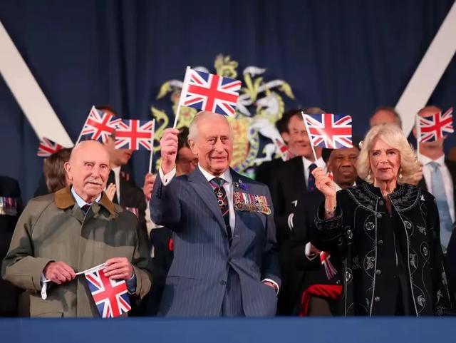 英国当地时间5月8日晚,威廉王子和凯特王妃现身伦敦皇家骑兵卫队阅兵场,参加在那里举行的纪念欧洲胜利日80周年的音乐会。