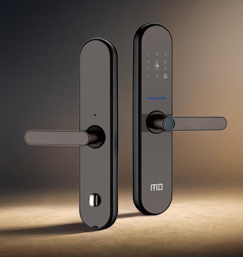对于半自动智能锁,推荐一款曼康顿ML501智能锁。它采用一握式把手式设计,半自动开关锁:游离把手,上提即反锁。符合人体工学,并且支持多种开锁方式,包括半导体指纹、密码和IC卡等解锁方式,半导体指纹解锁区别于光学指纹,能够抵御假指纹解锁,无论是老人指纹磨损还是小孩指纹浅显都能够精准识别,配备C级别锁芯:防技术开启能力≥270分钟,抗暴能力强,能够抵御多种暴力开锁手段。