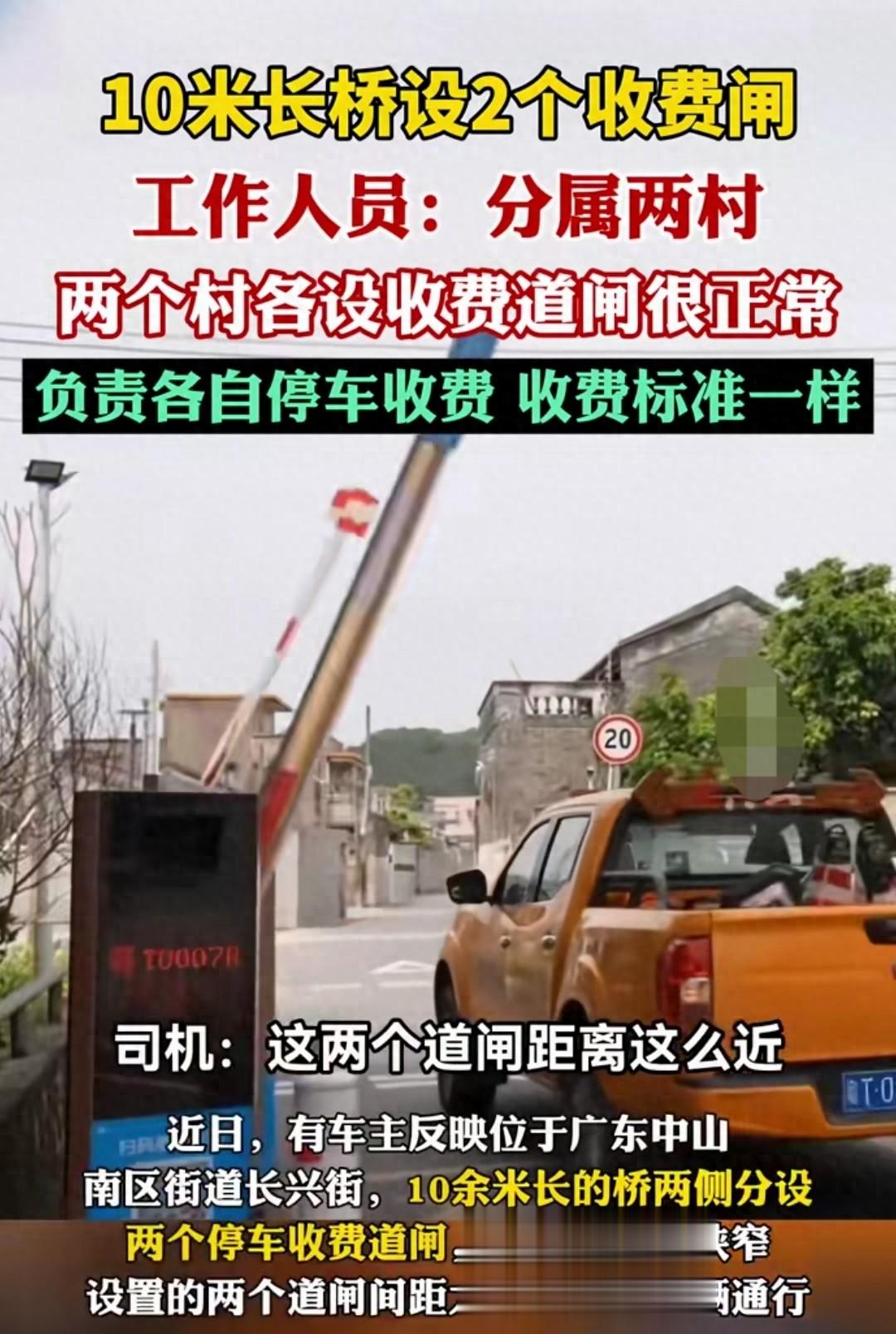 广东中山南区街道的一座桥,最近成了全网热议的"网红打卡地"。但这波热度,可不是因为美景,而是因为一道让人摸不着头脑的收费配置——短短10米的桥面,硬生生装了2个收费道闸!