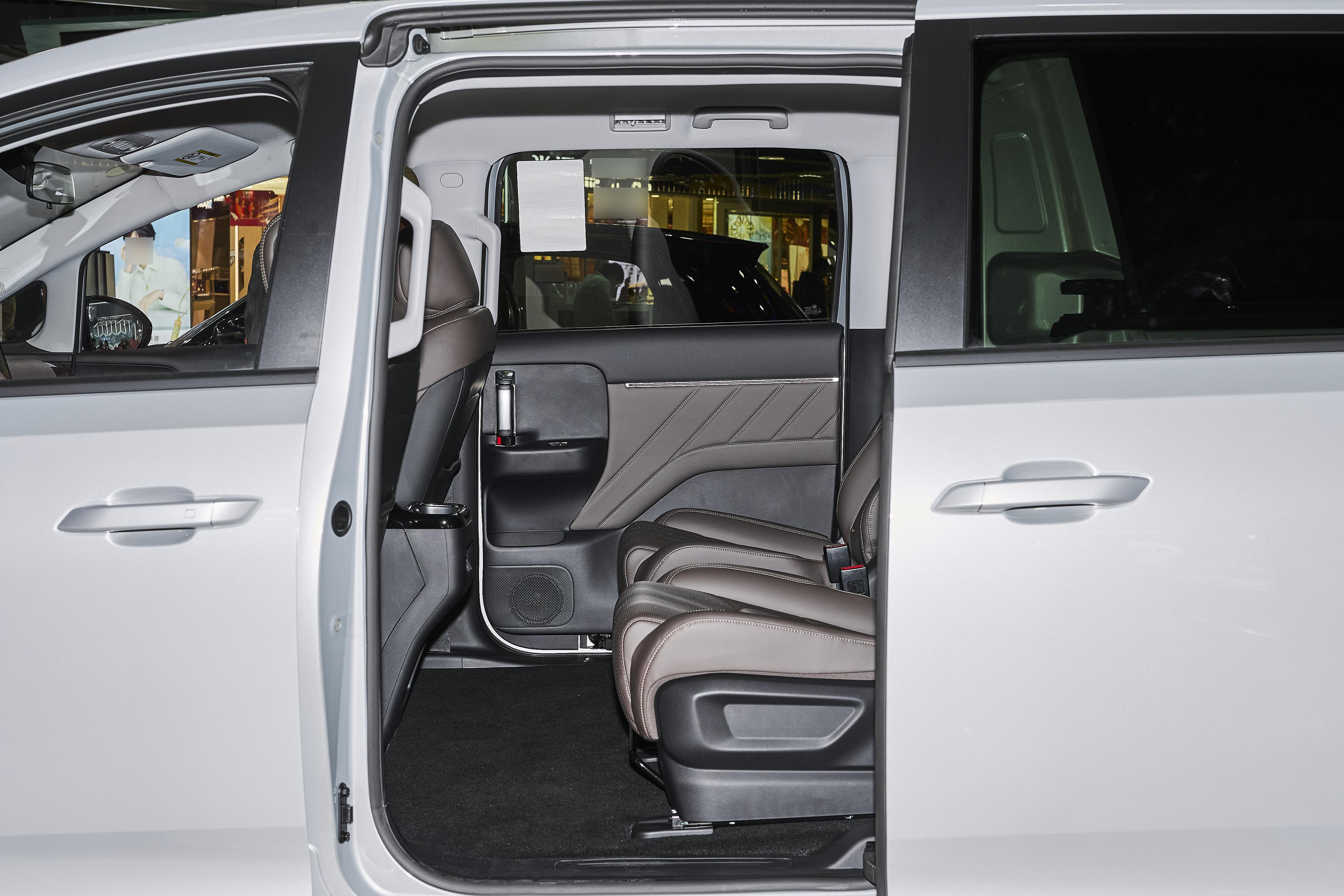 第二排是独立座椅,这是家用MPV的刚需配置,前后移动范围不小,调整到合适位置后,膝盖离前排靠背有两拳左右的距离,而且靠背角度可以调节,长途乘坐也能找到舒服的姿势。