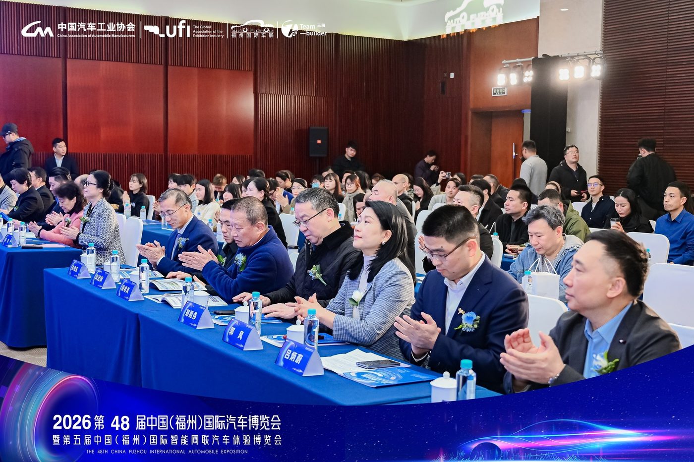 2026年3月12日,由中国汽车工业协会、福建省商务厅、福建省机电科技产品进出口商会指导,福州天飚广告有限公司主承办的第48届中国(福州)国际汽车博览会暨第5届中国(福州)国际智能网联汽车体验博览会新闻发布会在福州海峡国际会展中心隆重召开。