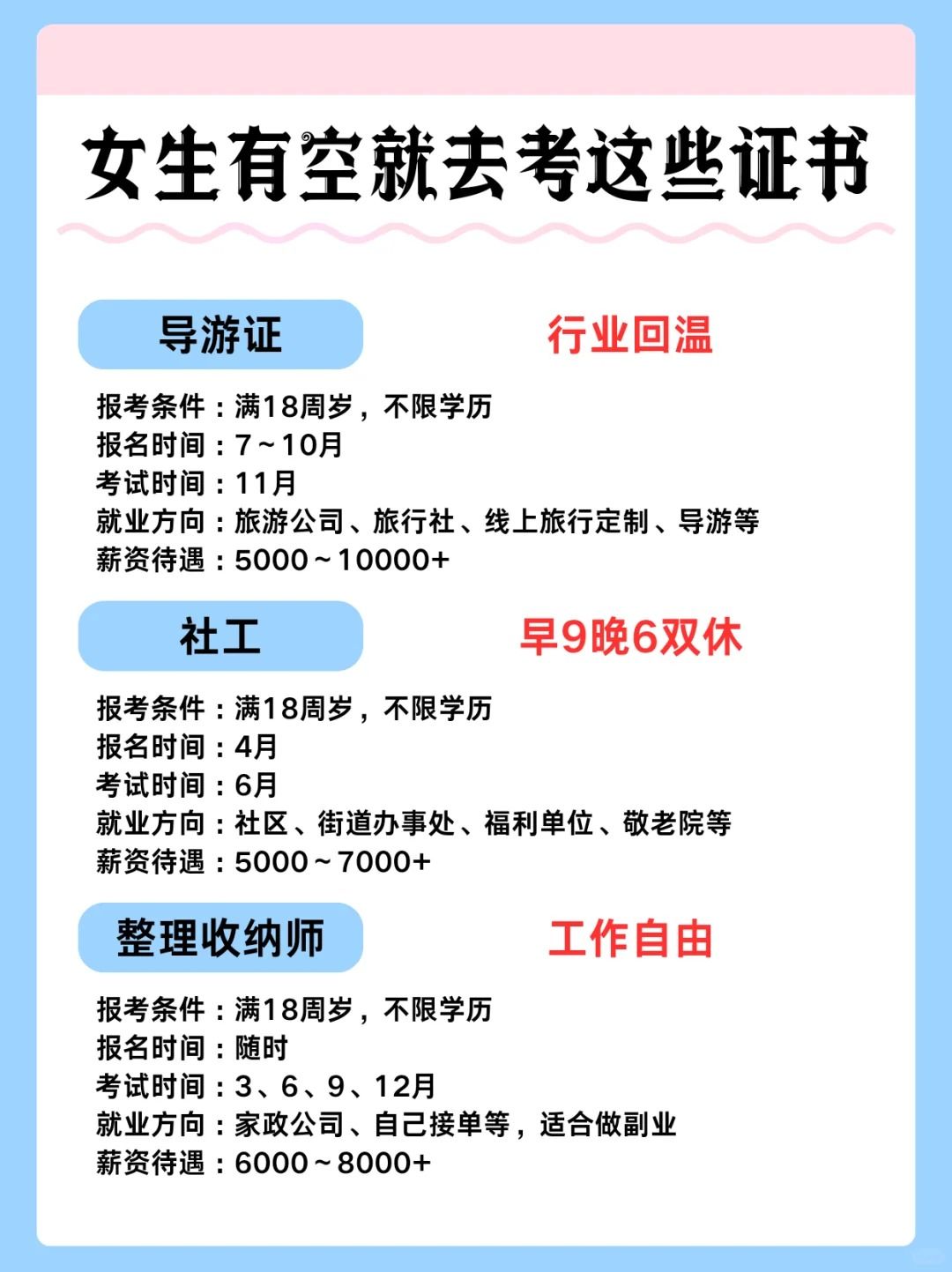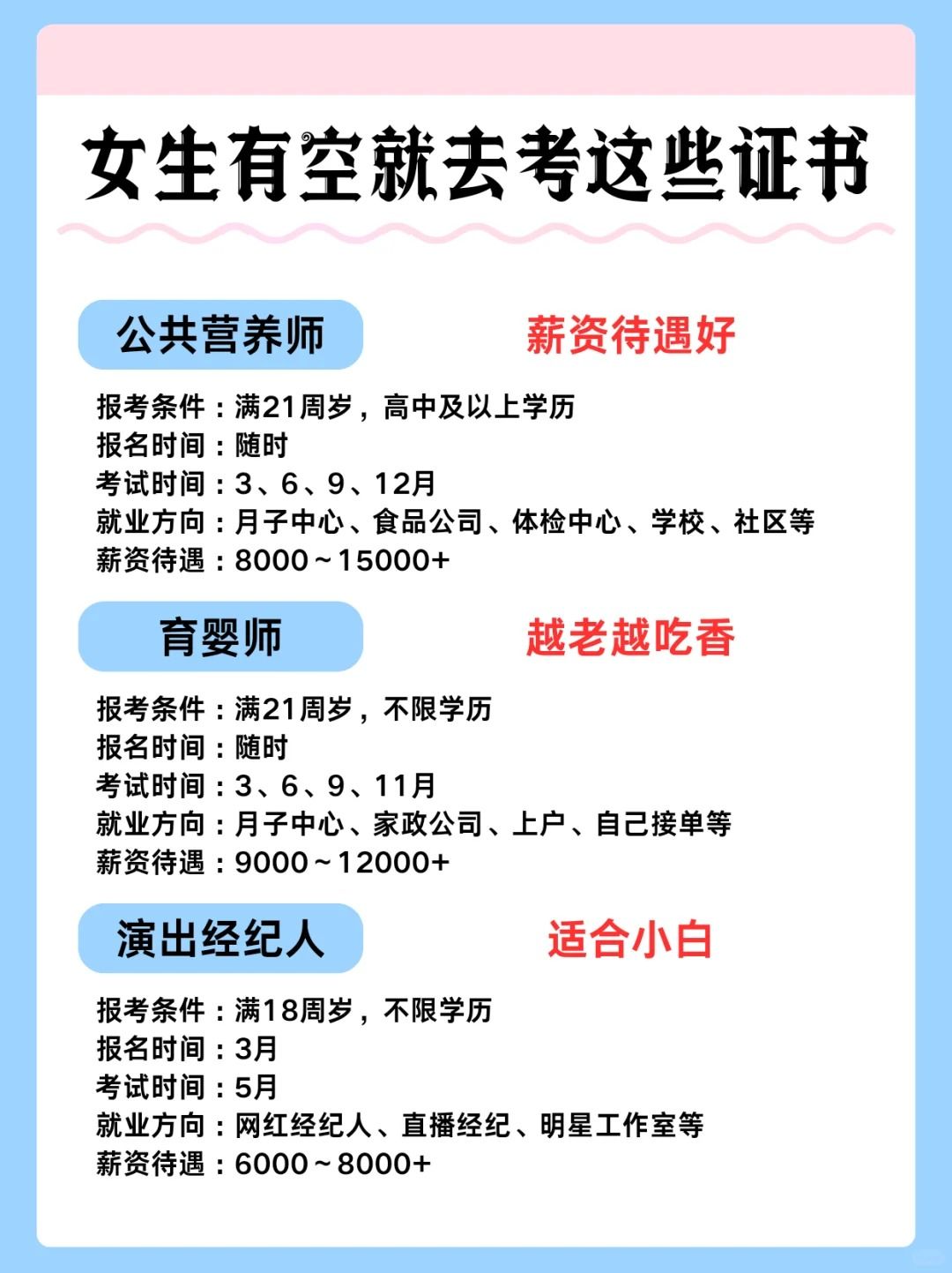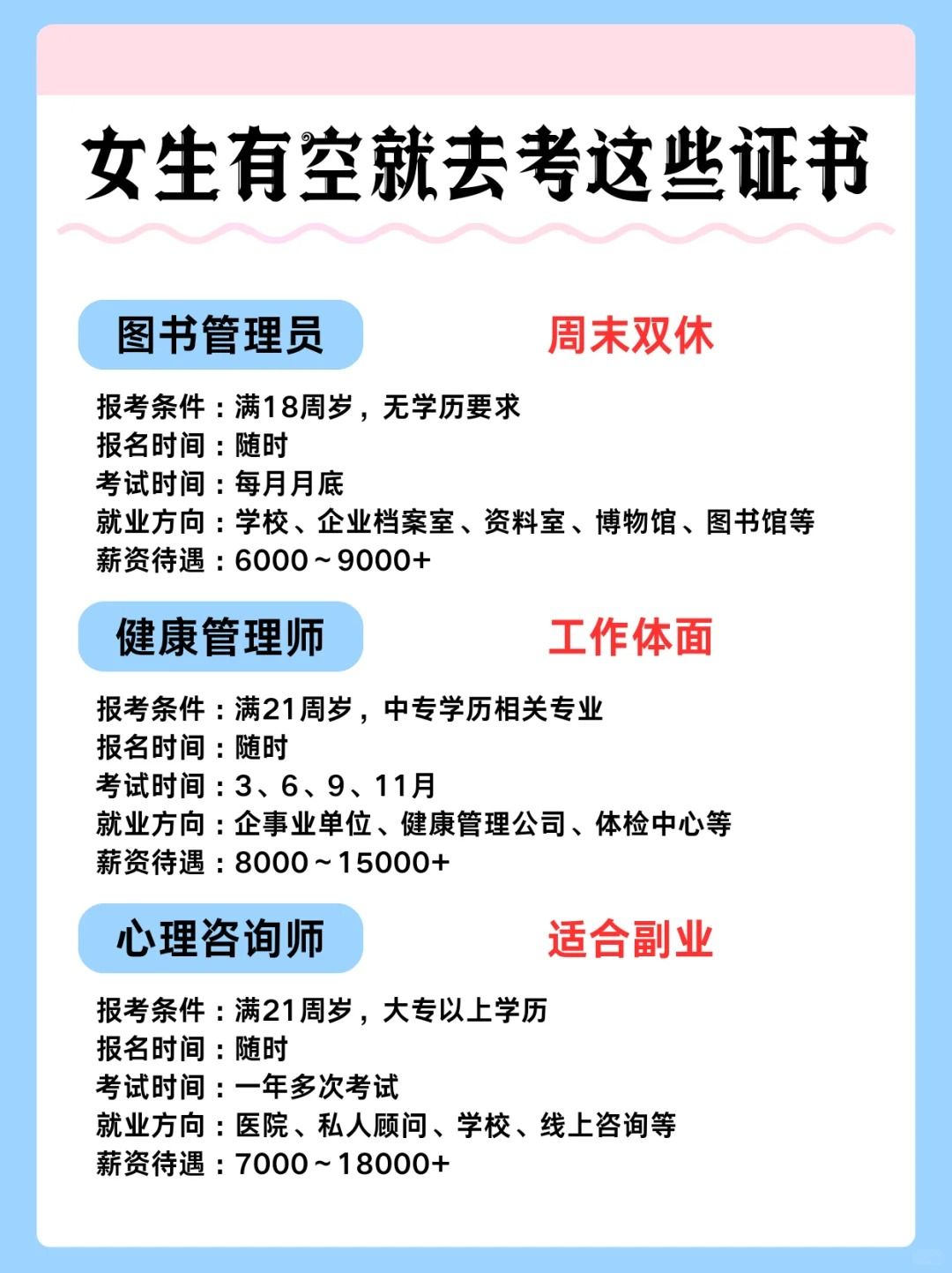 不管是在职打工人,还是想要新机会,应届生,宝妈,都可以利用空闲时间把这几个证考了,未来非常吃香如果你空闲时间多,不如趁机