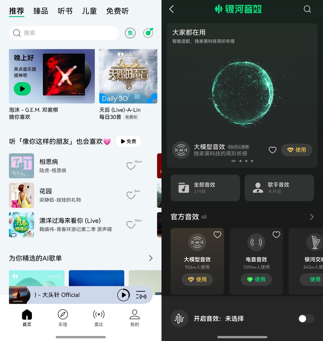 QQ 音乐的迭代力度更是惊人,一年足足更新 25 次。不仅上线了银河音效,还接入了鸿蒙独有的碰一碰分享歌曲功能,同时支持鸿蒙手机和平板之间跨端无缝接续播放,沉浸式听歌体验直接拉满。端侧实时声伴分离这个功能更是绝了,想唱啥歌直接消人声,手机秒变KTV。