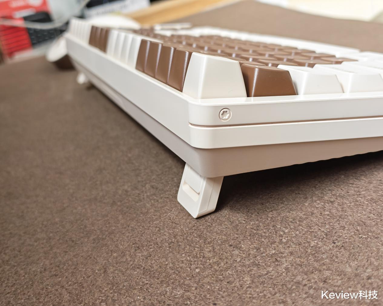 键盘采用了两段式支撑脚,方便我们根据自己的需求去调整键盘高度,避免了手腕抬起疲劳感。