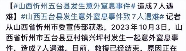 10月3日,在山西的五台发生了一起惨剧,有7人因为意外窒息身亡,而且其中3人还是父子关系,实在是太令人惋惜了。