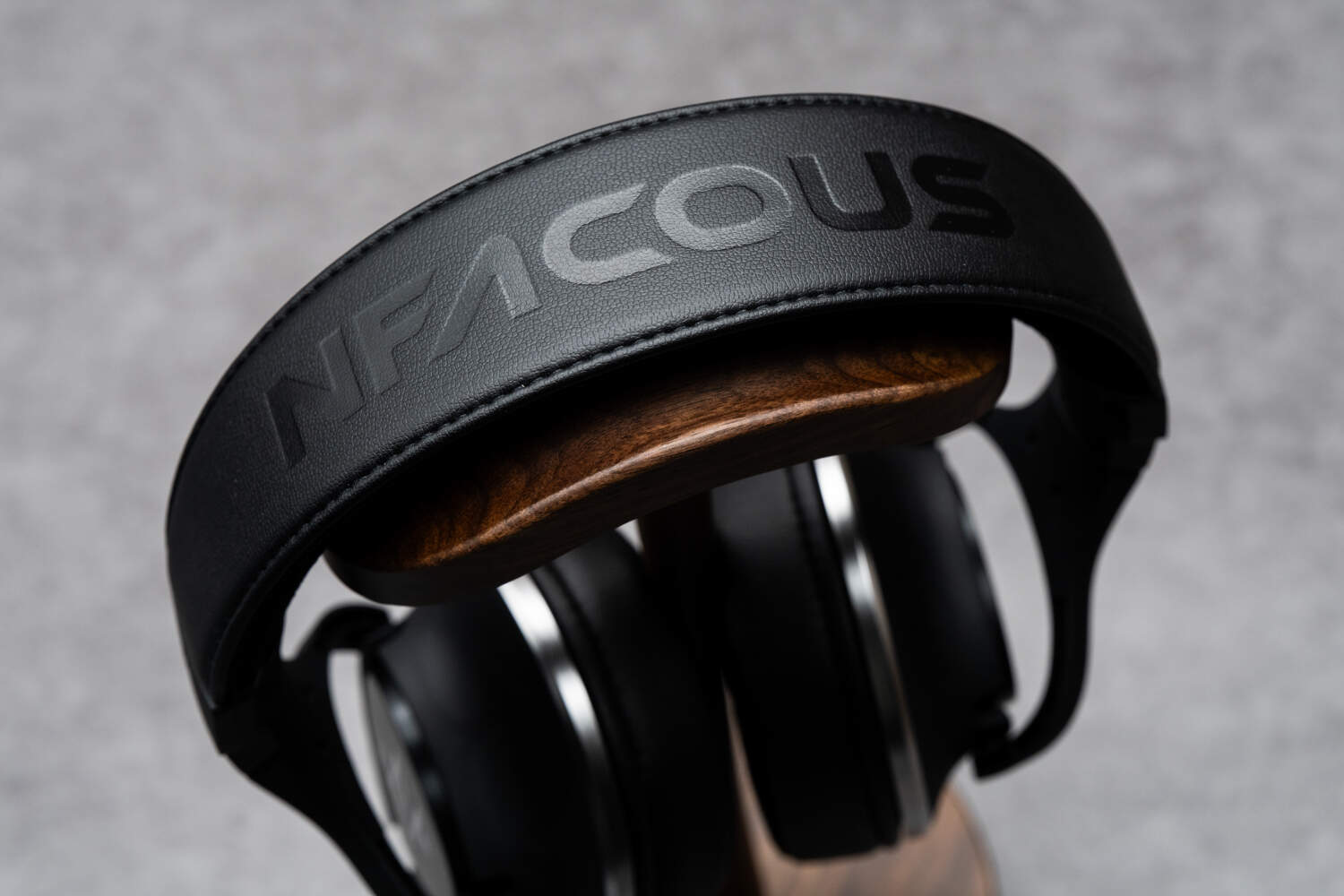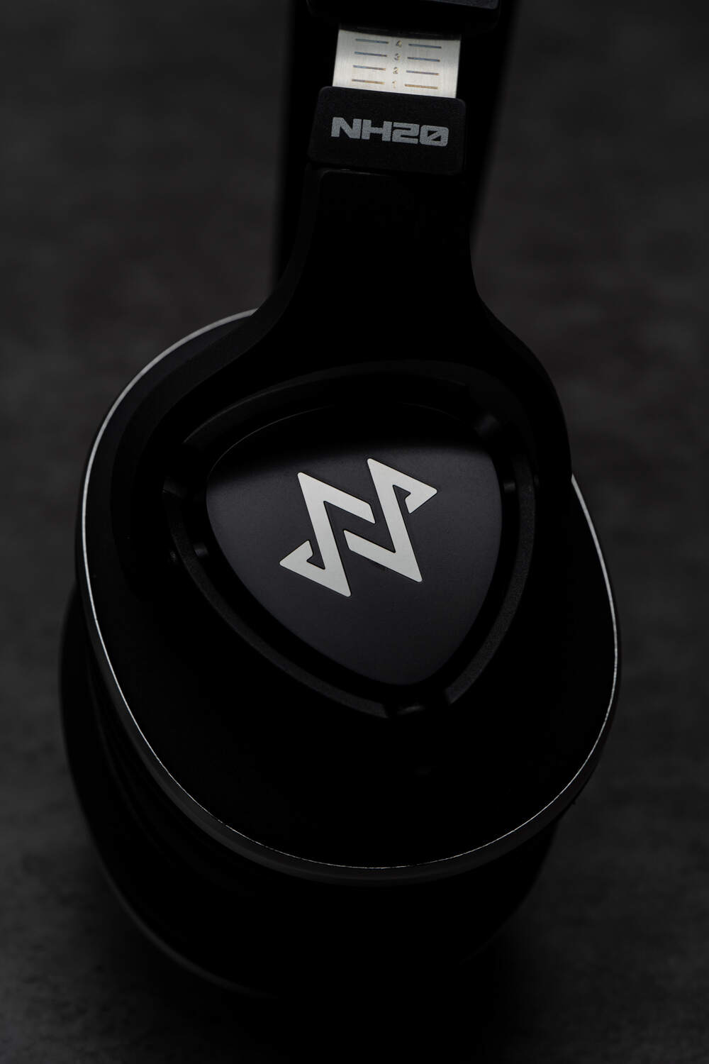 NH20拥有漂亮的设计语言,同样的倒三角拨片形单元面板,上面有高光的NFACOUS的logo,与椭圆形的单元外壳之间有着自然的过渡。单元外围一圈还有金属感较强的银色装饰,减少了以黑色为主色调的耳机整体的单调感。耳机采用了头戴监听常见的双转轴设计,单元可分别实现左右、上下方向一定角度内的转动;NH20可以将两侧单元放平以便于收纳,但没有做向内折叠来减小收纳空间的设计,单元的俯仰转动角度大约限制在50°左右,不能180°翻转。从佩戴角度来说,NH20的3D转轴设计使得耳罩与面部的贴合度很出色,基本上不论你是什么脸型,都能调节到一个令你满意的贴合度与舒适度。伸缩机构和头梁部分有几分索尼的味道,皮质包覆的头梁和金属的伸缩调节部件,兼顾了舒适和实用性。不过NH20这里有个问题,就是头梁拉伸的最大长度似乎没有考虑足够的余量,对于大头用户不太友好;像我的头部大小应该算中等,也需要把头梁调节到最大才能实现舒适佩戴。宁梵官方已经表示后续会大幅改进头梁设计来彻底解决这个问题,如果你的头比较大,可以等等这个新版本的NH20。