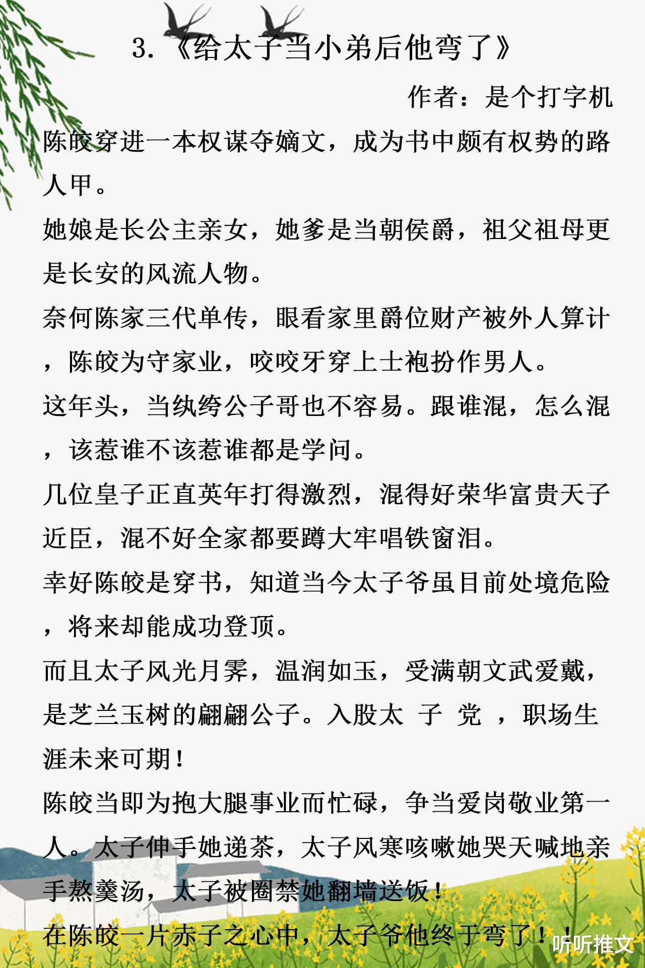 3.《给太子当小弟后他弯了》作者:是个打字机