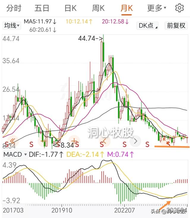 月k线图中,k线超跌反弹回落,MACD金叉。