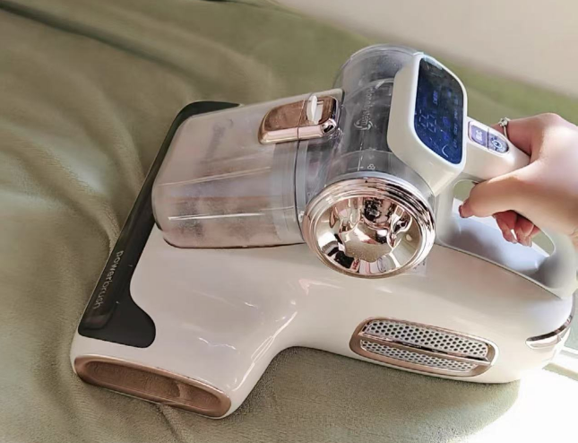 在床垫和枕头上使用时,机器运行稳定,手持感受轻松;清洁完成后床品触感更清爽,对易过敏人群比较友好。不过尘杯容量相对有限,清理一张大床后需要及时倒灰,适合注重杀菌功能、且不介意日常维护的用户选择。