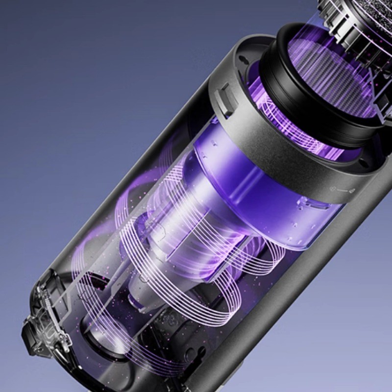 核心技术:强大动力系统架构:搭载12万转高速无刷电机,并采用复合锥形气旋分离架构。可稳定输出高达220AW吸入功率与的35000Pa强大吸力性能,配合99%尘气分离效率,持久保持强劲吸力,性能全面领先同级产品。