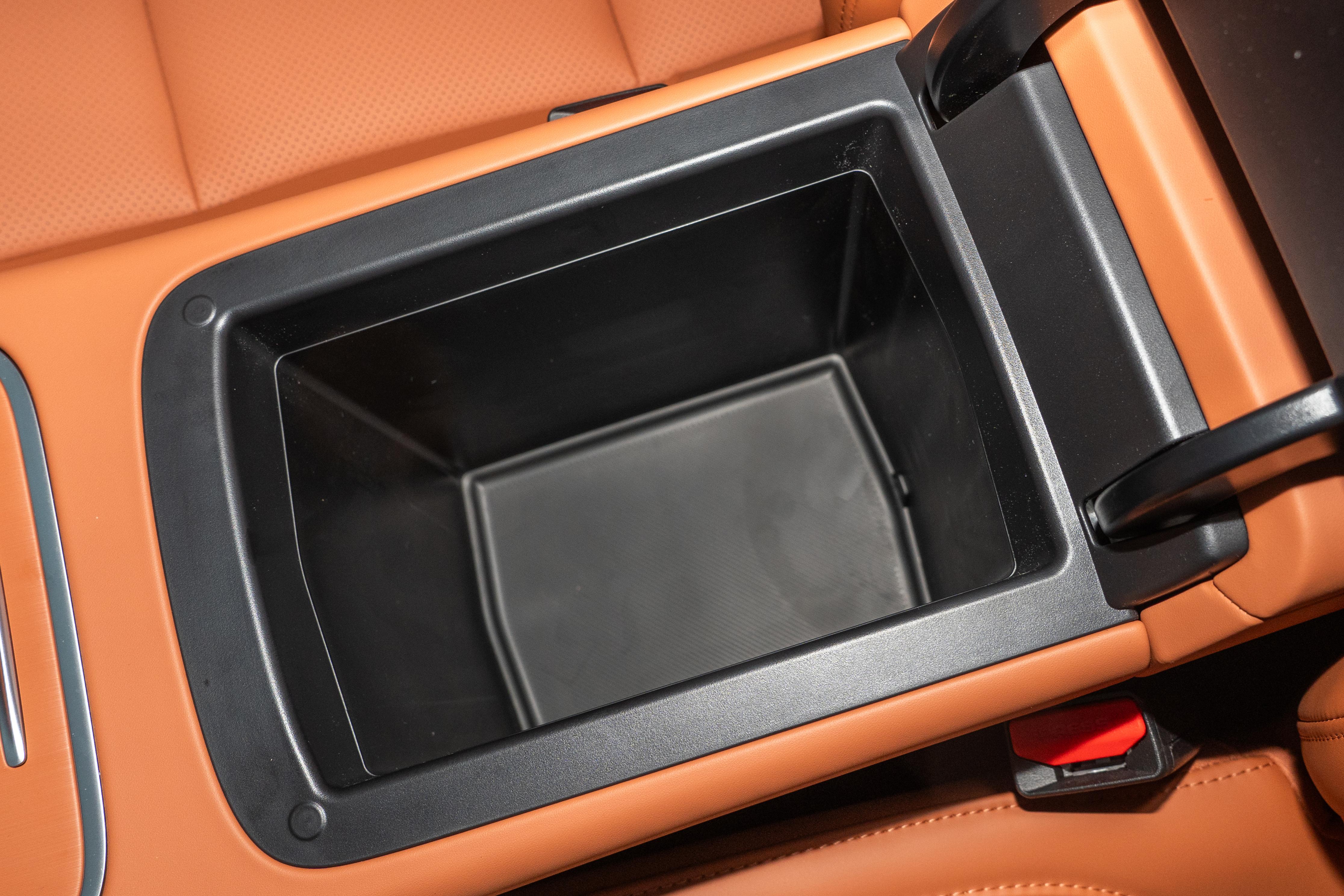 不光坐着舒适,而且还实用。一家五口出门杂七杂八东西也多,这车的“大肚量”还真能装。前排中控台下面有个超大储物格,宝妈的化妆包、儿子的画板、纸巾、手机,一股脑塞进去都没问题。车内配置了50W无线快充,手机放上去直接充电,不用插线,又快又方便。车门板的储物槽也不小,大瓶矿泉水、雨伞塞进去,还有空余的地方。后备箱常规容积370L,爸妈平时去超市购物,折叠小推车、整箱牛奶、水果只管往里面放,后排座椅还支持按比例放倒,可以形成一个835L的纯平空间,我中午在公司休息,把座椅一放,铺个垫子就是一张床,躺平歇会儿,比在办公室趴桌子舒服多了。电动后尾门还能调记忆位置,宝妈个儿不高,调个矮点的位置,逛超市提东西开后备箱,也不用踮脚,细节拉满。