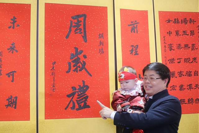 题记:小孙女周岁生日,爷爷为小孙女作周岁生日贺诗三首、奶奶书写两首贺诗并作梅兰竹菊四扇屏画,作为小孙女周岁生日的精神食粮礼物,爸爸妈妈定制了生日可乐、姑姑特制作了非遗花馍生日蛋糕、姥姥姥爷舅舅姨姨等亲友专程赶来…,纷纷送上了衷心祝福,给小孙女过了一个富有创意、热情洋溢、幸福快乐的周岁生日。我作的【诗三首•贺孙女胡轩瑒周岁生日】,以此衷心祝福小孙女当天生日快乐、一生幸福安康,并述怀与记之。如是: