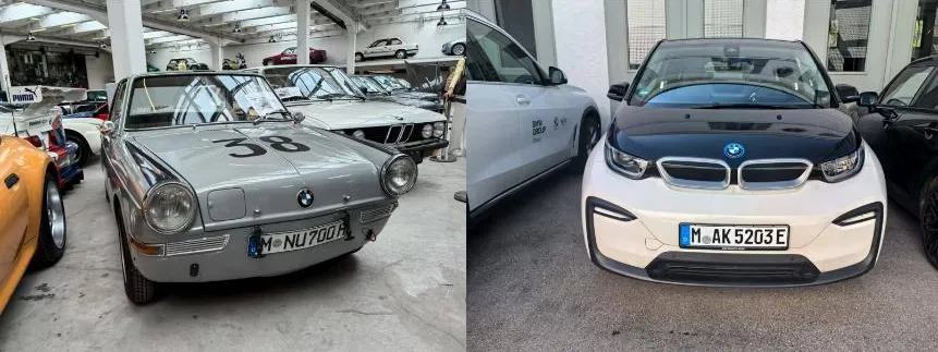 宝马700(左)和宝马i3(右)哪台是电动车?有双肾格栅的是电动,口罩脸的宝马700是燃油车……
