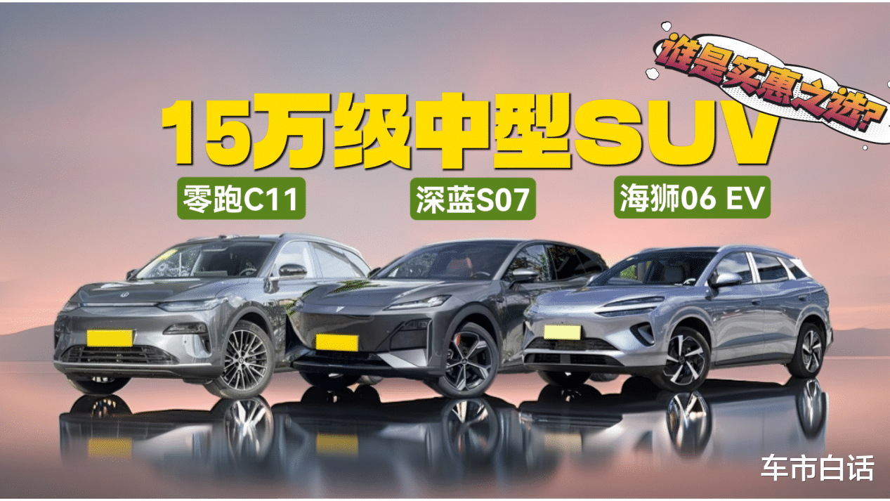 在如今的行业背景下,手握15万左右的预算,基本可以说是合资、国产任选了。但如果咱们追求越级体验,或许国产新能源更能满足咱们的需求,毕竟15万左右,咱们已经能买到中型SUV了。而在15万级的中型SUV阵营中,零跑C11、深蓝S07、海狮06 EV都属于是出现频率比较高的车型,包括我们身边也有不少朋友在关注。那这三款车型该如何选,今天咱们也来分析一下。