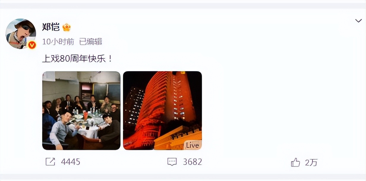 郑恺在社交平台发文,一句“上戏80周年快乐!”,表达了学子对母校的祝福之情。