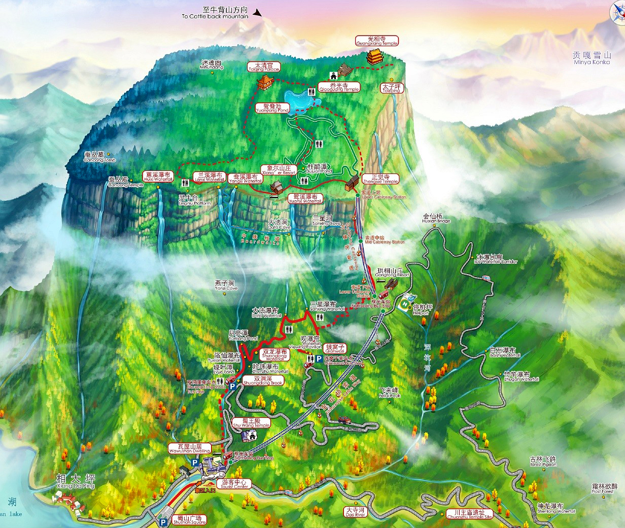 瓦屋山景区详细示意图(来自网络)