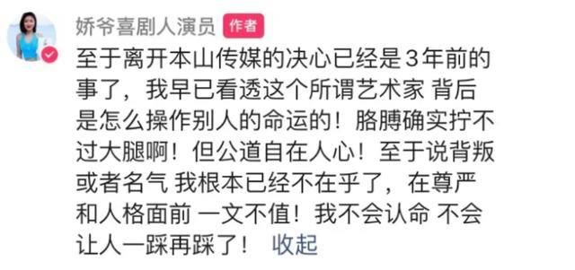 娇娇控诉赵本山“专制”,打压弟子等等,但也有爆料说,娇娇在本山传媒所谓的被“压制”,其实是因为赵本山怕她在直播行业无底线的行为会影响本山传媒的形象。