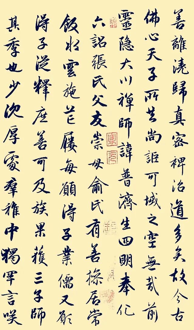 此作融禅心于笔墨,合碑铭之庄与行书之逸,既得《圣教序》之骨,又具《兰亭》之韵。观之如听禅音袅袅,品之若饮清泉泠泠,尽显中和之美、文人风骨。赵孟頫以一支柔毫,写禅心妙谛,传晋唐风流,让这件塔铭成为行书史上不可逾越的高峰,亦让松雪墨香,千载之下依旧沁人心脾。
