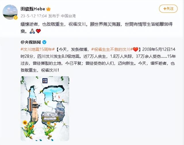 今年的5月12日,是汶川大地震发生15周年的纪念日,众多的明星也是社交媒体中发声祭奠逝者。但是有一位明星却因为发声,遭到了网暴,她就是田馥甄。