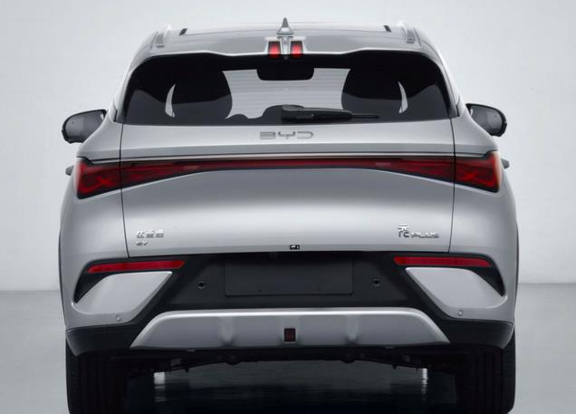 新款比亚迪元PLUS侧面造型轮廓与现款车型车型基本一致,不过D柱区域的装饰件有所变化,营造出悬浮式车顶的视觉效果。此外,新款比亚迪元PLUS后包围造型同步更新,设计风格与前包围相统一,而传统外拉式车门把手、贯穿式后尾灯组等元素得到了保留。
