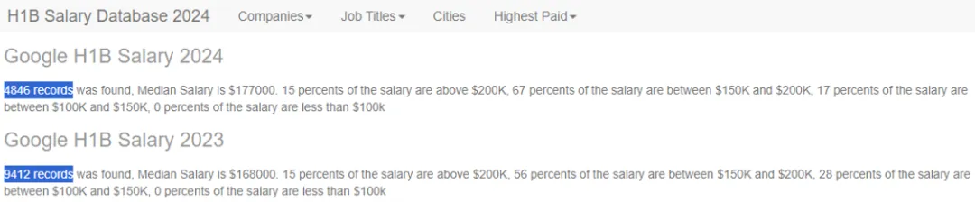 Google:实习岗位未提及Sponsor,但明确表示无转正机会,且2024年提交的H-1B减少了一半。