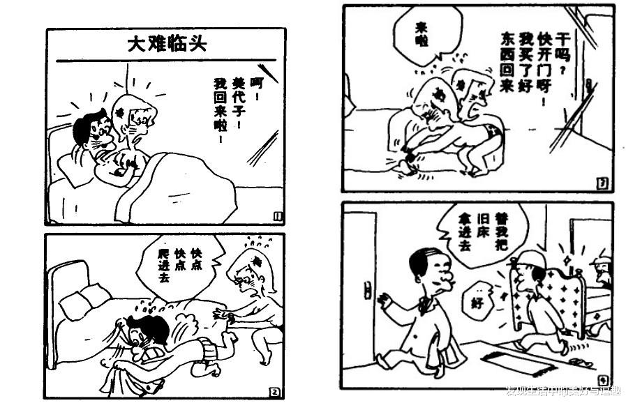 一对男女正在卿卿我我,门外女的老公喊我回来啦,快开门,我买好东西回来了。女的慌忙让男的躲在床下。谁知门外的老公指挥搬运工,原来他买了个新床回来。