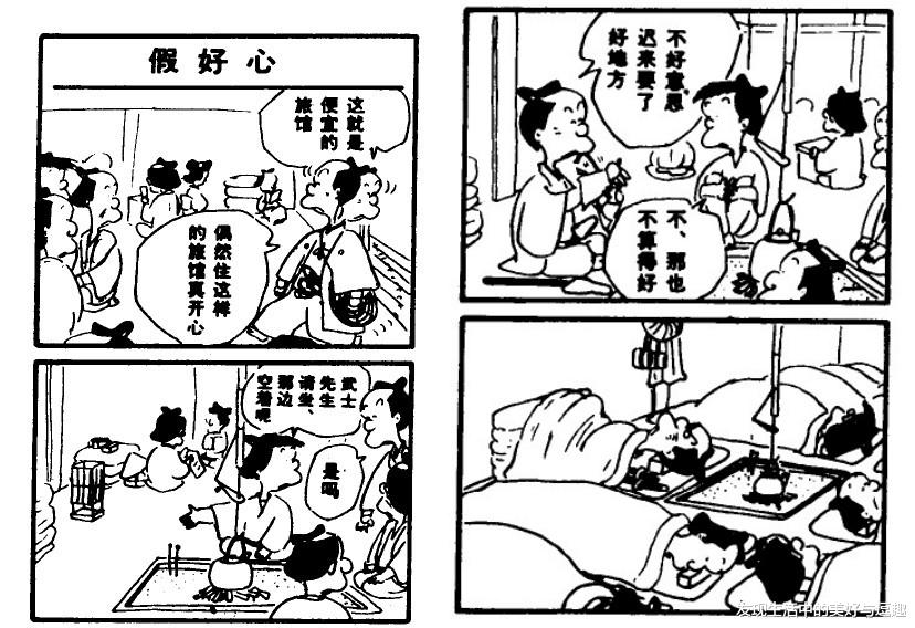 有个武士进了一家便宜的旅馆,旅馆里围炉旁的碰丁让武士坐到围炉旁的一个角落,武士不好意思地说来迟了还给了我一个好地方。让位的碰丁小声说不算好地方。晚上熄灯睡觉武士才知道这个角落太小了,腿根本伸不直……